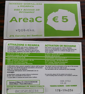 假設要在米蘭市區還車,白天進城還會需要繳交5歐元的進城稅,米蘭市區的租車公司人員會跟你說,只要到附近的書報單買這張單子,然後用打電話,簡訊或是上網的方式登錄,沒有做的話,會罰錢。 假設你用的電話是台灣的號碼,他的繳款確認簡訊你可能會收不到,我一直都沒收到,後來我是請飯店的人幫我打電話去確認。