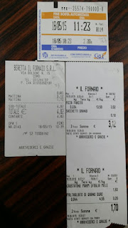 我們在科摩鎮市區有看到一家18XX年就開業的麵包店,除了麵包可以買外,進去就跟店員問那些披薩或薄餅是Vegetarian可以吃的,其實吃素在義大利還蠻方便的,我們有吃蛋奶,所以只要注意不要有洋蔥或蒜頭類的就行了,4.82歐買了2~3片披薩外加一個麵包,百年老店,太優了。