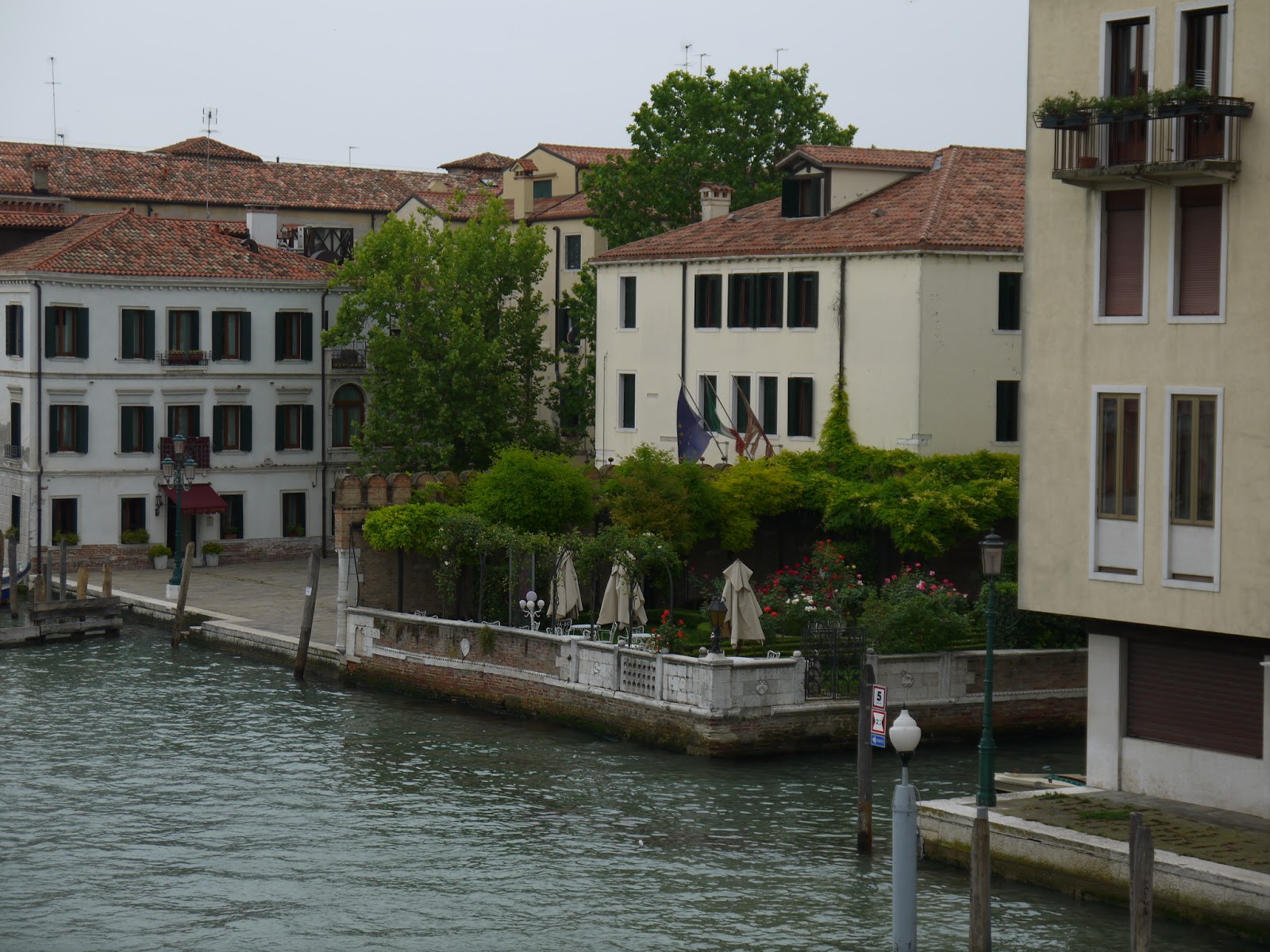 飯店後方就是大運河了,有收折起來的遮陽傘哪裡就是後花園