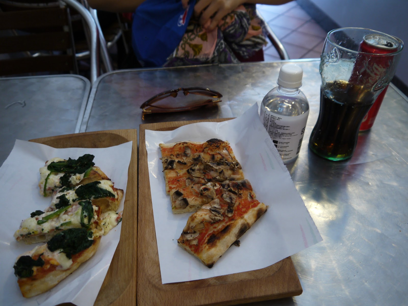 從旅館可以慢慢散步到羅馬鬥獸場,慢慢走大概15~20分鐘路程,途中看到一家小披薩店,就在快到羅馬鬥獸場的地方,老闆跟老闆娘看起來就是非常標準的義大利大叔跟大媽,東西好吃又便宜,推薦大家可以在這裡歇歇,吃點東西。